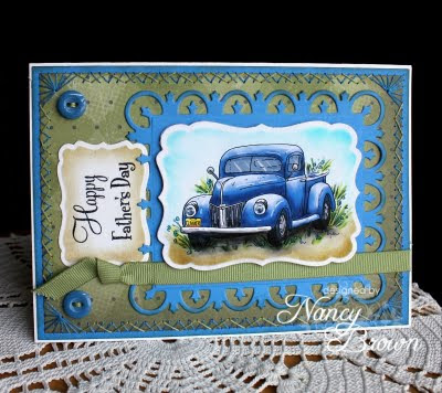 So, here is one of my Father's Day cards. I haven't used this fantaastic image since last year. I don't make many masculine cards. This is The Old Truck Digi and pre-colored Set from Fred She Said. I chose to use the Blue Truck fro my card. I just love the way that Tracey Lynn colors her images so when I'm busy, I choose to let her do the hard work for me. The best part is that when you purchase this image, you get the Digi and four pre-colored images as a package deal. It doesn't get much better then that.